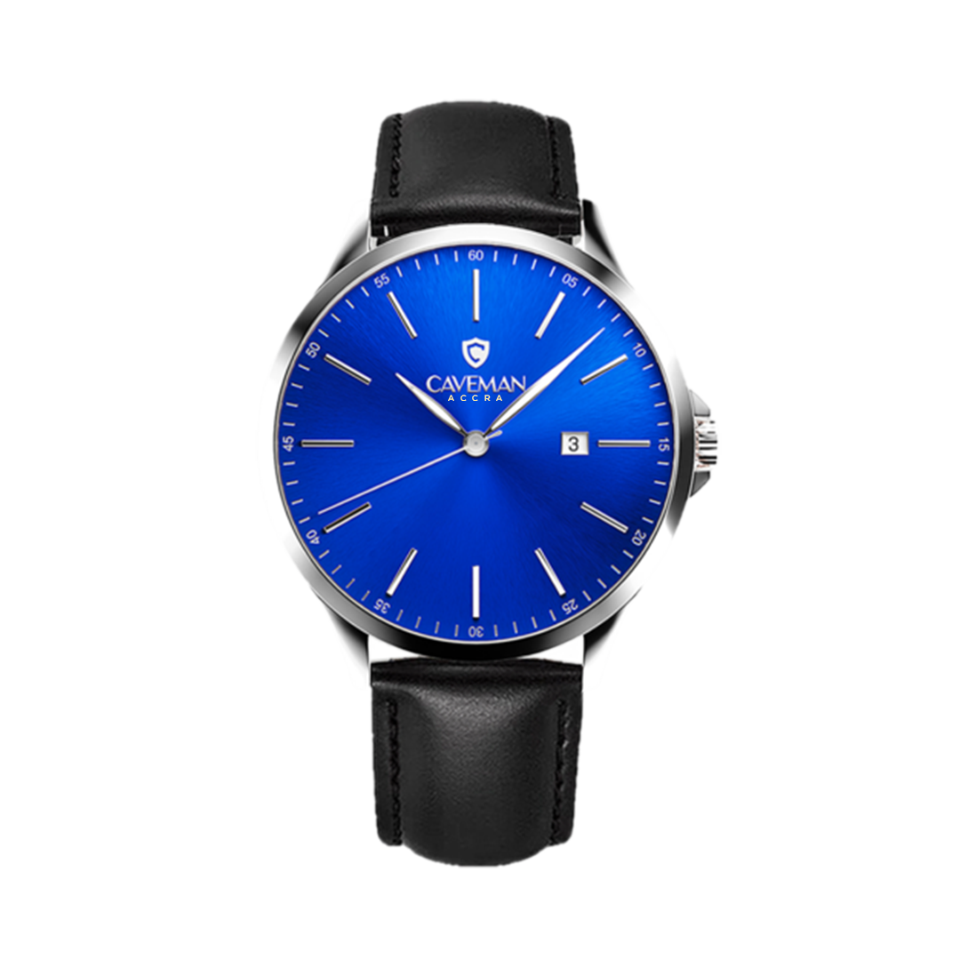 Be the first to review “Caveman Blue Volta Watch (Silver with Black Leather)”