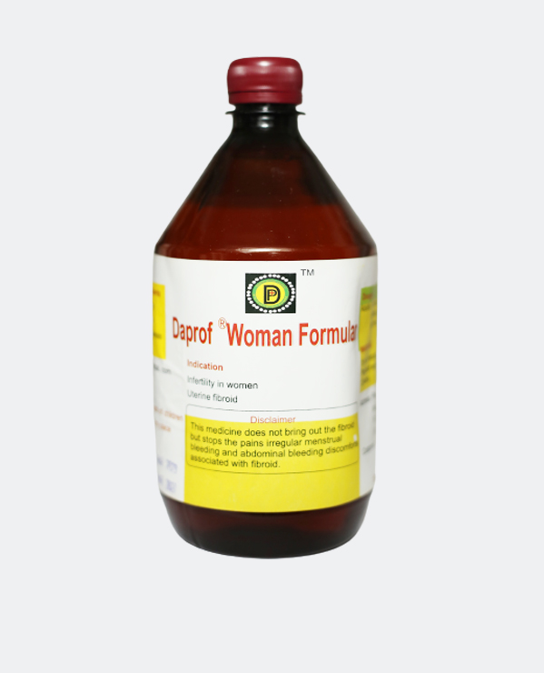 Women all over the world experience abnormal menstrual disorders, such as painful menstruation and heavy bleeding during the menstrual cycle. Some of these disorders may be caused by fibroids leading to infertility in about 40% of women and miscarriages about 20%. On the other hand, there are women who have regular and normal menstruation. However, they would like to maintain the healthy living free from fibroids and menstrual complications, as well as have Safe and comfortable menopause. Whatever your problem is concerning the uterus, DAPROF WOMAN LIFE has a natural and lasting solution for you. It is specially formulated for girls and women in their reproductive years, women in their menopause; as well as pregnant women with the history of fibroids for whom it diminishes the effects of the fibroid, nourishes and protects the zygote through growth to full term.