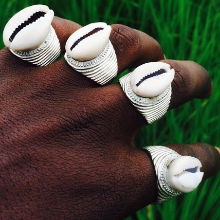 This Cowrie Shell Ring is made with a wide band.